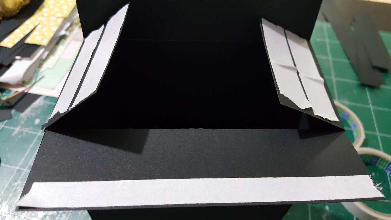 עוברים על קווי הקיפול באמצעות עצם קיפול. את החלק העליון, הצר יש לקפל לכיוון הנגדי לתר קווי הקיפול.