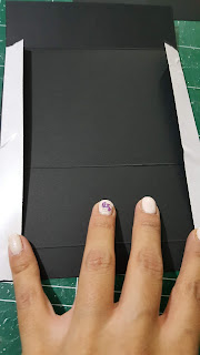 בחלק של 7.5*8.75 מניחים דבק (רגיל או דוצ) על שני הכנפיים בגודל 0.75 אינצ שנוצרו. הן ישמשו לחיבור שני חלקי השקית לאחד: