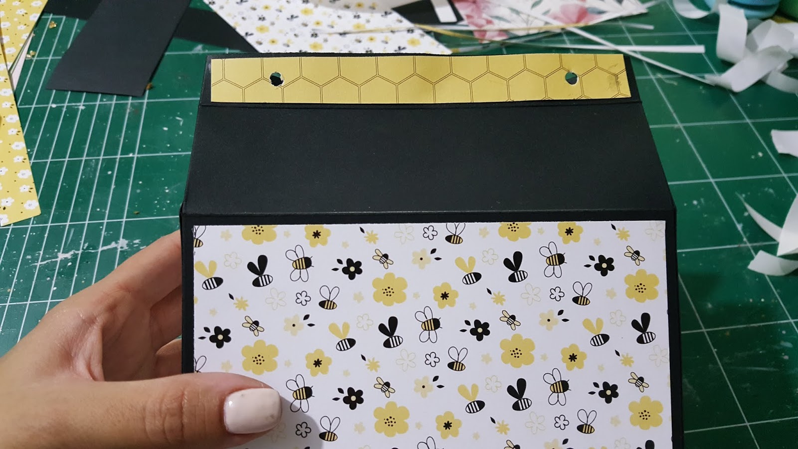 כלים: משטח מתרפא, טרימר, משטח קיפול, עצם קיפול, מספריים, דבק, דבק דוצ, פאנצ עיגול, פאנצ סקאלופ, קרופ א- דייל.